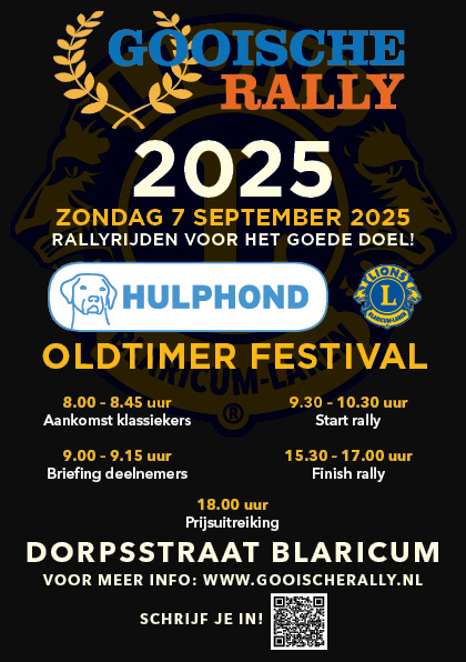 Hier vind je de uitslagen en een mooie foto- en video-impressie van een zeer geslaagde 23ste editie van de Gooische Rally 2024.
