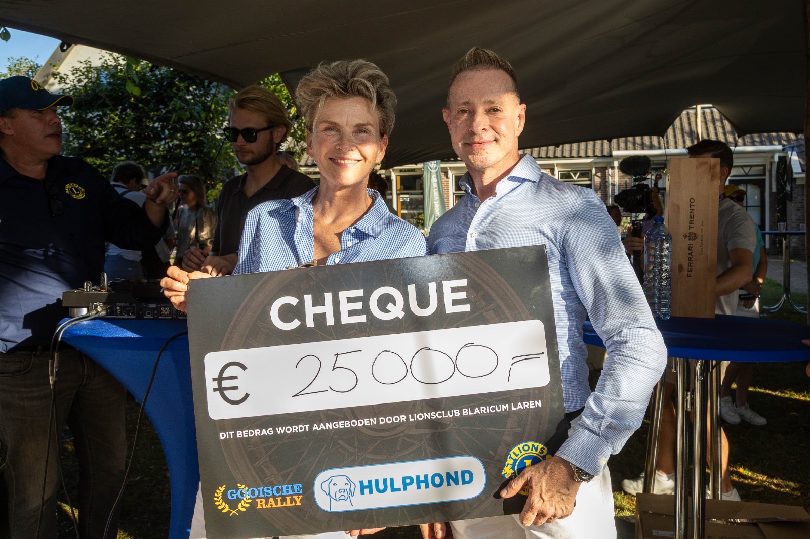 Het absolute hoogtepunt van de dag: de overhandiging van de cheque van €25.000 aan Hulphond Nederland, in het bijzijn van Hulphond ambassadeur Anita Witzier én van “onze” puppy Hans ๐พ.